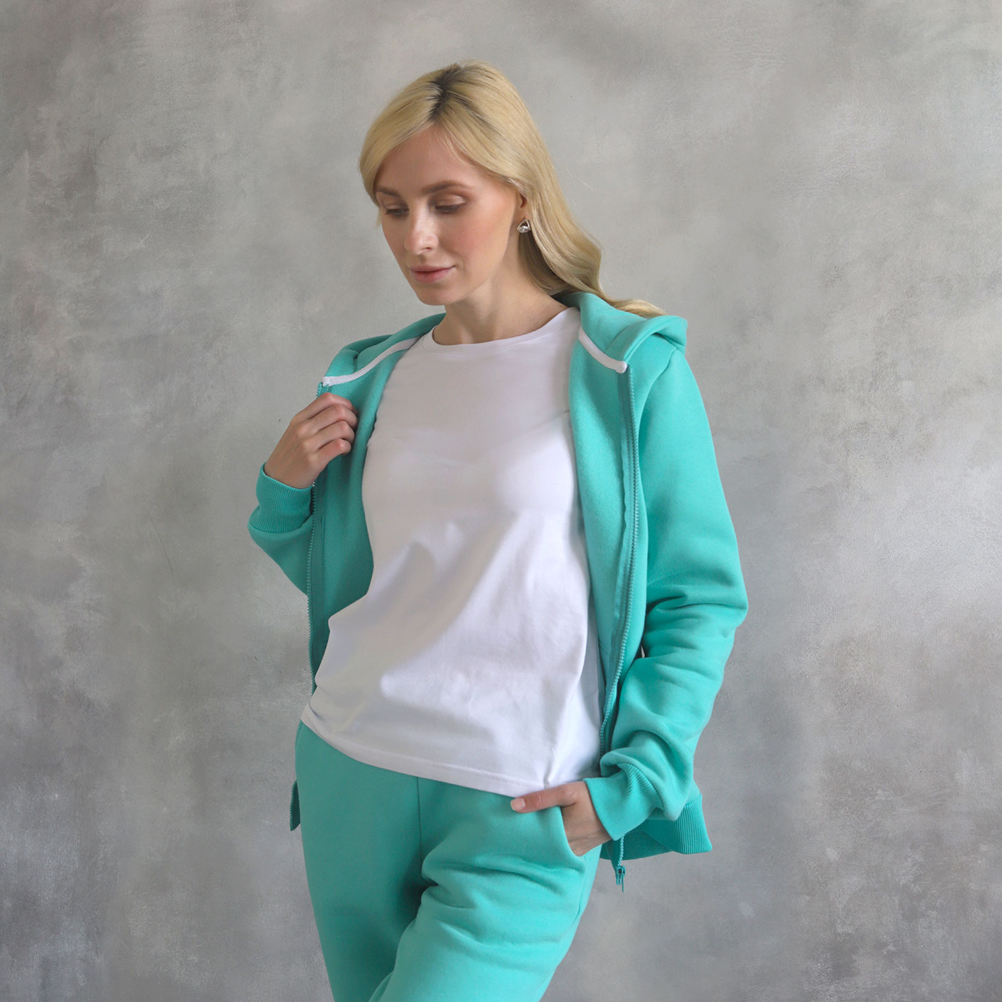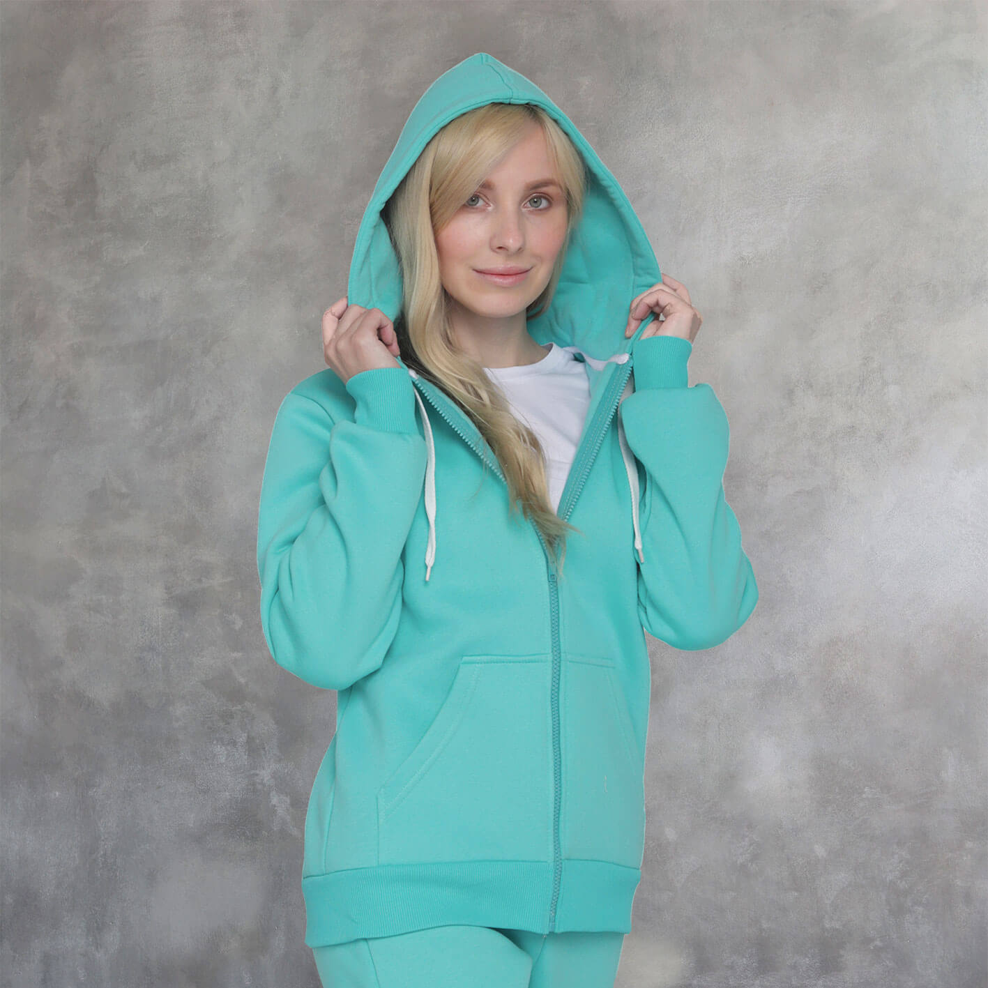 Ищете качественную базу для брендированной одежды? Предлагаем женские толстовки с капюшоном на молнии, изготовленные из премиального 3-х ниточного футера с начесом «Пенье» (80% хлопок, 20% полиэстер). Слегка приталенный силуэт и удобные карманы делают эту модель идеальной для повседневной носки.